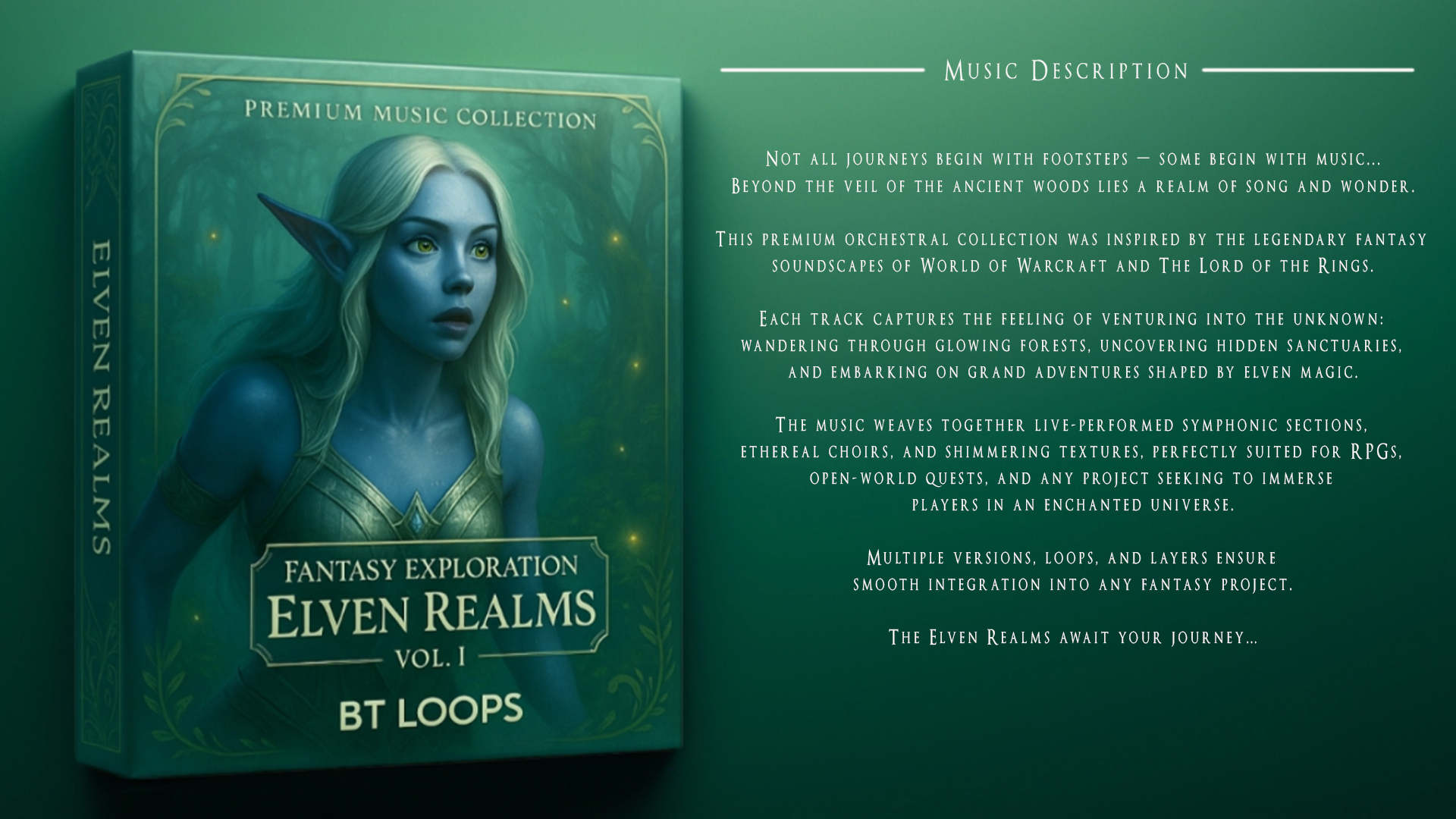 Heavily inspired by the legendary fantasy soundscapes of World of Warcraft, this collection is rich with enchanting melodies, lush harmonies, and immersive atmospheres that breathe life into any world.